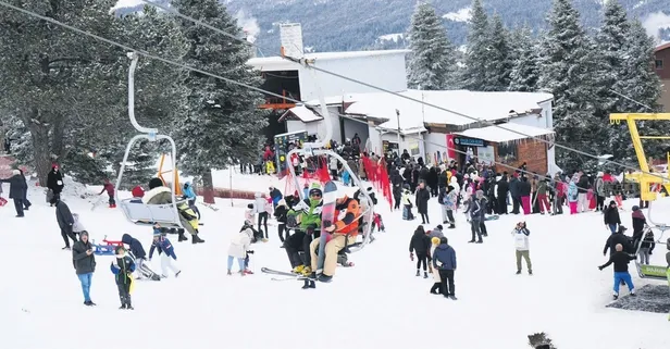 Metrelerce sıra oluştu! Uludağ’da sömestir tatilinde kayak pistleri doldu taştı