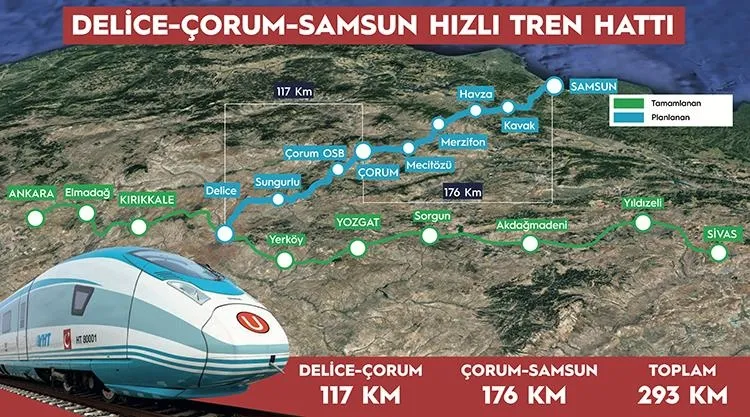 Ulaştırma ve Altyapı Bakanı Abdulkadir Uraloğlu, hızlı tren ağını Karadeniz'e ulaştıracaklarını söyledi. Uraloğlu, "Kırıkkale-Çorum-Samsun hızlı tren hattı ile önce Kırıkkale'den Çorum'a, sonra da Samsun'a hızlı tren getireceğiz. Projenin tamamlanmasıyla Ankara- Samsun arası kara yoluyla 7 saat süren seyahat süresi 2 saat 45 dakika olacak. 509 kilometre uzunluğundaki Samsun-Sarp Demiryolu projesi de gündemimizdedir. İnşallah bu yıl içinde onun da proje çalışmalarını başlatacağız" dedi.