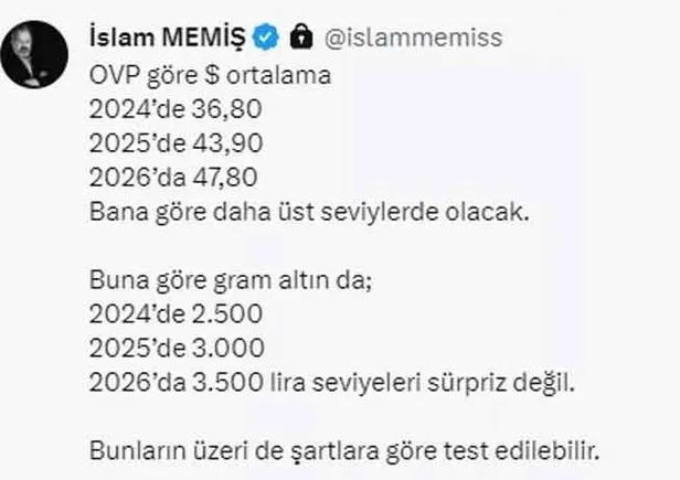 Dolar kuru tahminlerinin yanı sıra, altın fiyatlarına dair tahminler de yatırımcıların merak konusu. İslam Memiş'in yorumlarına göre;