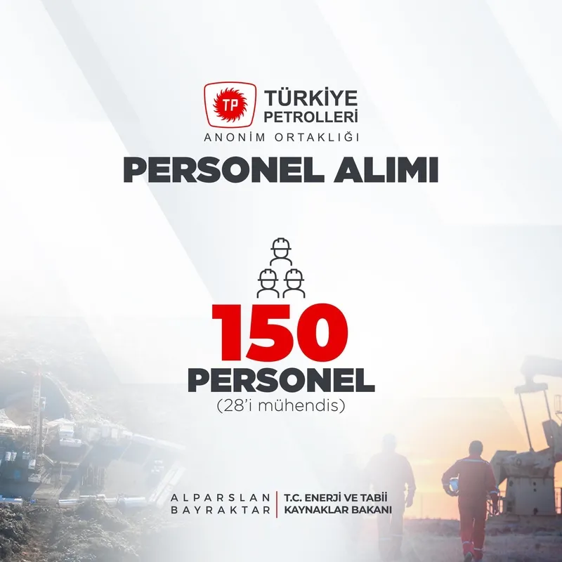Enerji ve Tabii Kaynaklar Bakanı Alparslan Bayraktar, Türkiye Petrolleri Anonim Ortaklığına (TPAO) 150 personel alınacağını bildirdi.
