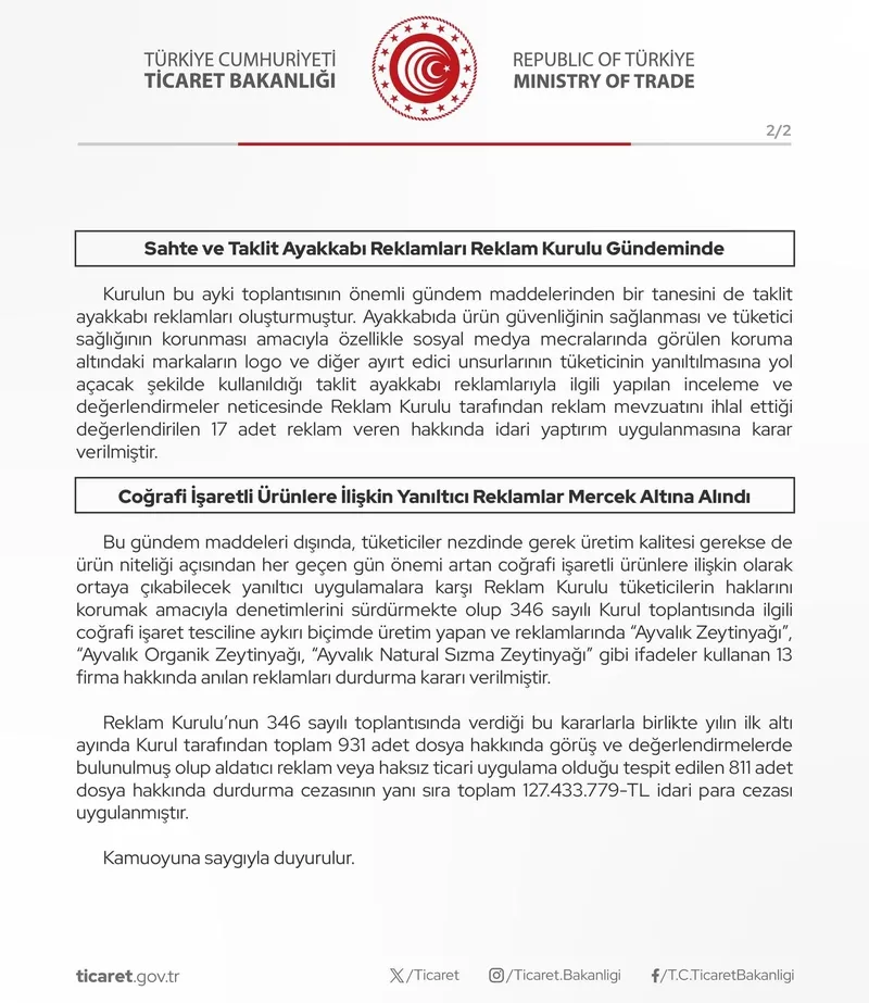 Aldatıcı reklamlara af yok! Reklam Kurulu bazı çevre, zeytinyağı ve ayakkabı markalarına 20,1 milyon lira ceza kesti