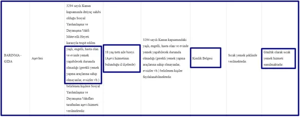 Belgede 3294 sayılı Kanun kapsamında ihtiyaç sahibi olduğu tespit edilen kişilere Sosyal Yardımlaşma ve Dayanışma Vakfı Mütevelli Heyeti kararıyla aşevi hizmeti sunulduğu belirtilmiştir. Bu kanun, sosyal yardım hizmetlerini düzenleyen temel yasal çerçevedir.