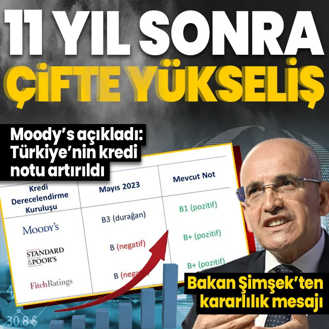 Standard & Poor's (S&P) en son Mayıs 2024, Fitch Ratings'in ise Mart 2024'te yükseltme kararı aldığı Türkiye'nin kredi notunda Moody's'den de cuma günü artış kararı gelmişti.