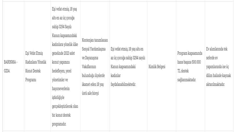 Eşi Vefat Etmiş Kadınlara Yönelik Konut Destek Programı ile ilgili detaylar şu şekildedir: