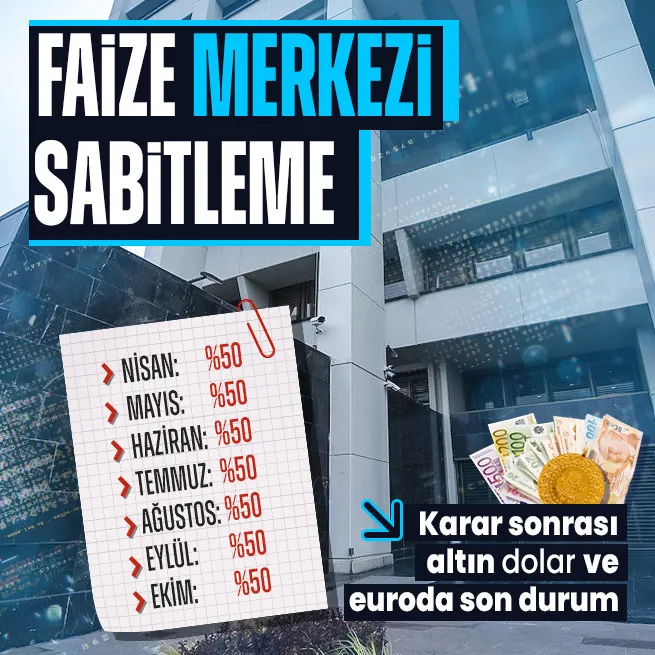Türkiye Cumhuriyet Merkez Bankası Para Politikası Kurulu, politika faizi olan bir hafta vadeli repo ihale faiz oranını değiştirmeyerek yüzde 50'de tuttu.