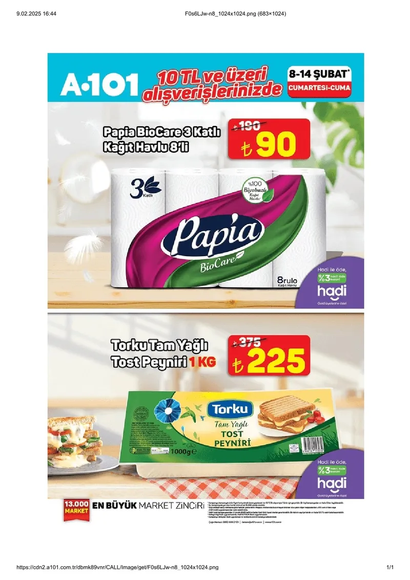 A101'in 13 Şubat 2025 Perşembe aktüel kataloğu yayınlandı! Zincir marketin yeni haftadaki kampanya broşüründe gıda ürünlerinden temizlik malzemelerine, beyaz eşyalardan ev tekstiline kadar birçok kategoride fırsatlar yer alıyor. Bu haftanın en dikkat çeken ürünleri arasında katlanabilir çamaşır selesi, yumuşatıcılar, makyaj malzemeleri, dikey süpürge ve tost makinesi bulunuyor.