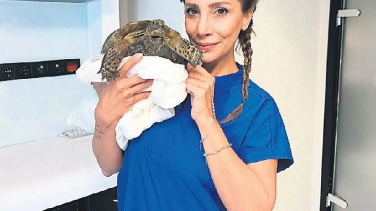 Ankara'da Gölbaşı ilçesinde yaşayan Şafak Yeşilyurt, yol kenarında kabuğu kırılmış bir kaplumbağa fark etti.