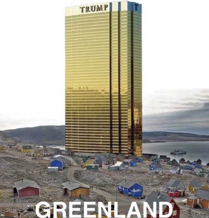 Daha önce sosyal medyada fotomontajla dikilmiş parıltılı bir Trump Tower görseli paylaşılarak "Trump Grönland'ı alırsa ilk işi bunu yapmak olacak"mizahı yapılmıştı. Başkan Trump bu görseli sosyal medya hesabından paylaşarak konuya esprili bir üslupla yaklaştı ve "Grönland'a bunu yapmayacağıma söz veriyorum" dedi.