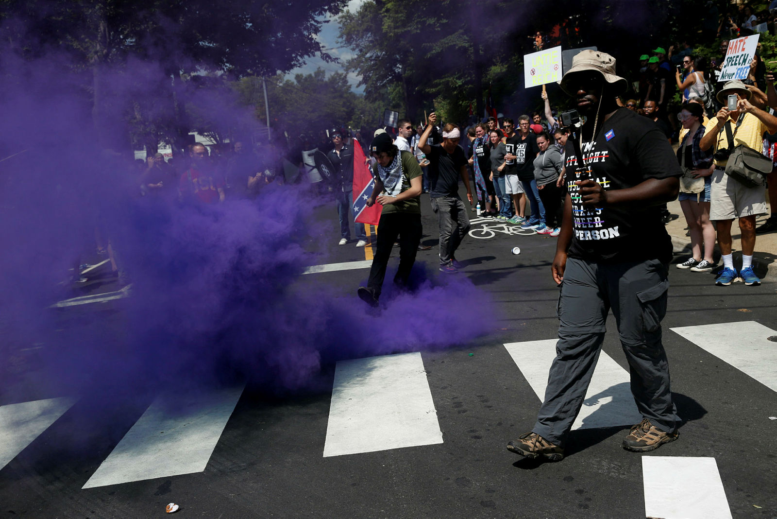 Irkçı grupların silahlarıyla geldiği gösteri alanına karşıt grupların gelmesi üzerine şehirde gerilim yükseldi. Grupların zaman zaman birbirlerine saldırması üzerine Charlottesville Belediyesi bölgede olağanüstü hal ilan etti.