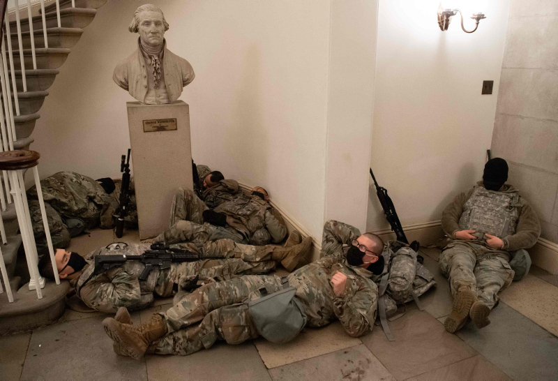 Bununla brilikte, geçen hafta Trump taraftarlarının Kongre'yi basmasının ardından binada olağanüstü güvenlik önlemleri alındı. Askeri bir kışla görünümüne bürünen Kongre'nin koridorlarında askerler gece ve gündüz boyunca nöbet tutuyor.