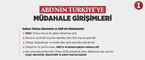 ABD, yıllar boyunca Türkiye'nin her ekonomik ve siyasi atılımlarında, gerek istihbarat örgütleri aracılığıyla gerekse içeride beslediği FETÖ gibi ihanet içinde bulunan gruplarla, Türkiye'ye diz çöktürmek, boyun eğdirmek için kirli oyunlarını sergiledi.