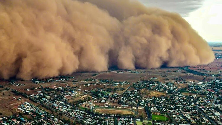 Sosyal medyada paylaşılan drone videosu Avustralya'da meydana gelen toz fırtınasının gündüzü geceye çevirdiği anları gözler önüne seriyor.