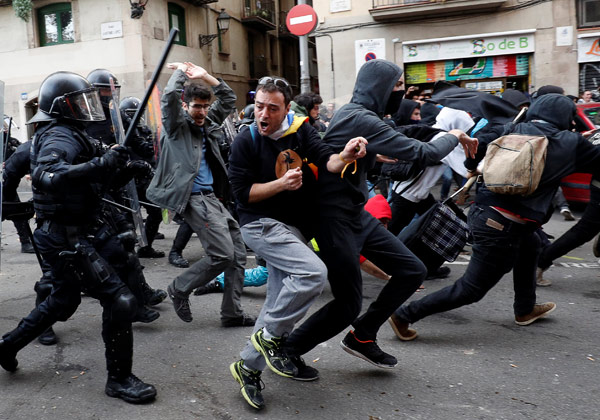 Başbakan Pedro Sanchez'in uzlaşma arayışıyla Katalonya'nın başkenti Barcelona'da düzenlediği kabine toplantısı, şehri savaş alanına çevirdi.
