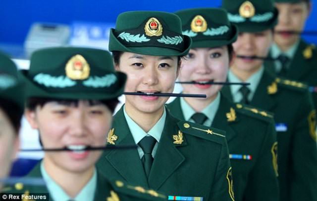 Bu kadın polisler mükemmel bir gülümsemeye sahip olabilmek için işte böyle bir eğitimden geçiriliyor.
