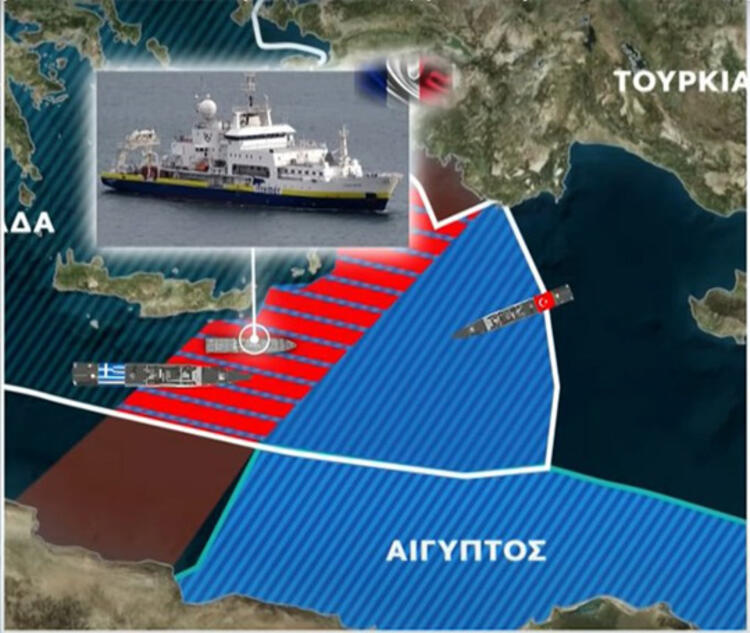 Yunanistan hükümet sözcüsü Aristotelia Peloni, Türk ve Yunan savaş gemilerini karşı karşıya getiren Fransız araştırma gemisi L'Atalante'nin Yunan kıta sahanlığı bölgesinde bulunduğunu savundu. Yerel medya, 'L'Atalante' gemisininin mürettebatında Fransız, Yunan, İtalyan ve İsrail vatandaşlarının bulunduğunu bildiriyor.