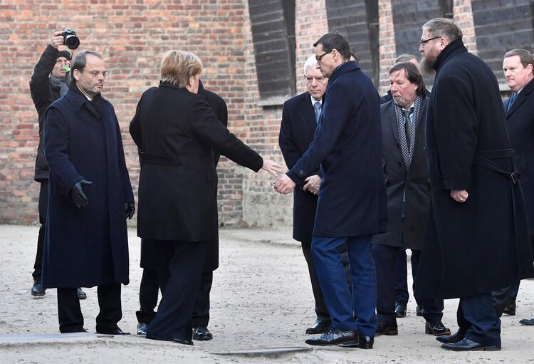 Polonya'nın Oscwinchim kentindeki Auschwitz-Birkenau toplama kampını ilk kez ziyaret eden Alman Şansölye, burada Polonya Başbakanı Mateusz Morawiecki ile Naziler tarafından katledilen insanlar anısına çiçek bıraktı.