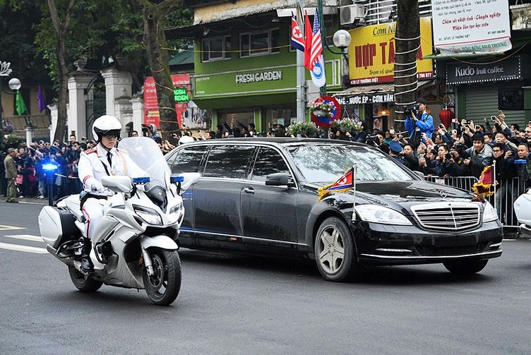 Kim Jong-un'un özel aracına yakın korumaları ve Vietnam polisi eşlik etti.