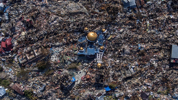 Endonezya'daki depremin yarattığı hasarın kuş bakışı görüntüsü paylaşıldı.