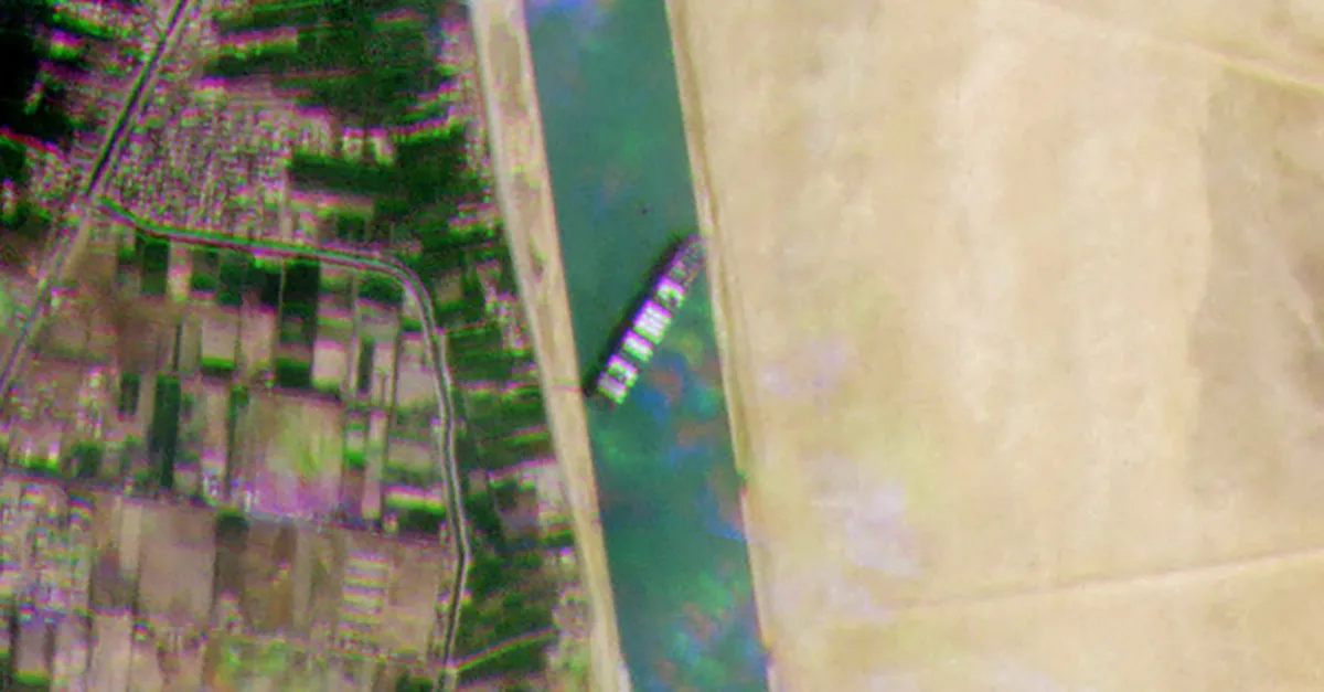 Uzunluğu yaklaşık 400 metre olan gemi, genişliği 200 metreyi bulmayan bu dar kanalda çapraz bir halde sıkışmış duruyor.