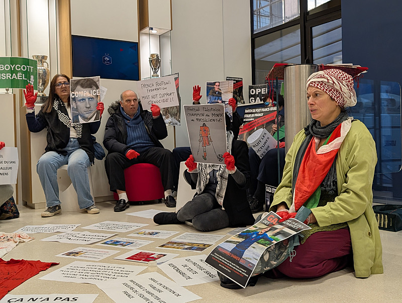 Fransa'nın başkenti Paris'te onlarca Filistin yanlısı aktivist, 14 Kasım tarihinde Stade de France'ta oynanması planlanan Fransa-İsrail maçının iptal edilmesi talebiyle Fransa Futbol Federasyonu binasını işgal ederek protesto gösterisi düzenledi. Bölgede çok sayıda güvenlik görevlisi önlem aldı.