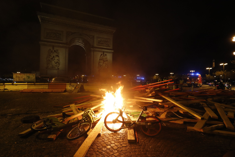 Eylemciler, sabah saatlerinde, Champ-Elysees Caddesi'ne geldi. Aralarında aşırı sağcıların da yer aldığı eylemcilerle polis arasında gergin anlar yaşandı. Polis, caddedeki bir barakayı ateşe veren ve çevreye zarar veren göstericileri göz yaşartıcı gaz ve tazyikli su kullanarak uzaklaştırmaya çalıştı.
