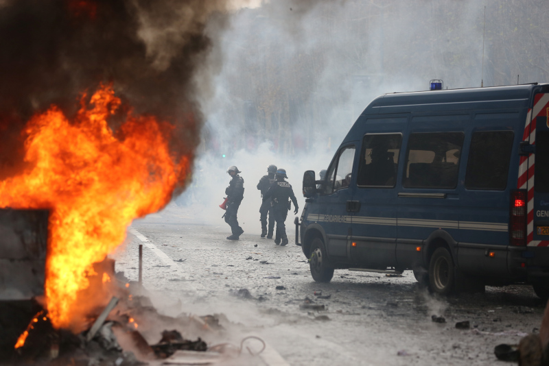 Fransa'da akaryakıt fiyatlarına yapılan zamların ardından Paris'te düzenlenen gösterilere polis sert müdahalede bulundu. Polisin sert müdahalesi, gösterileri, hükümet protestosundan çıkararak "devlet terörüne karşı birlik" yürüyüşlerine çevirdi.