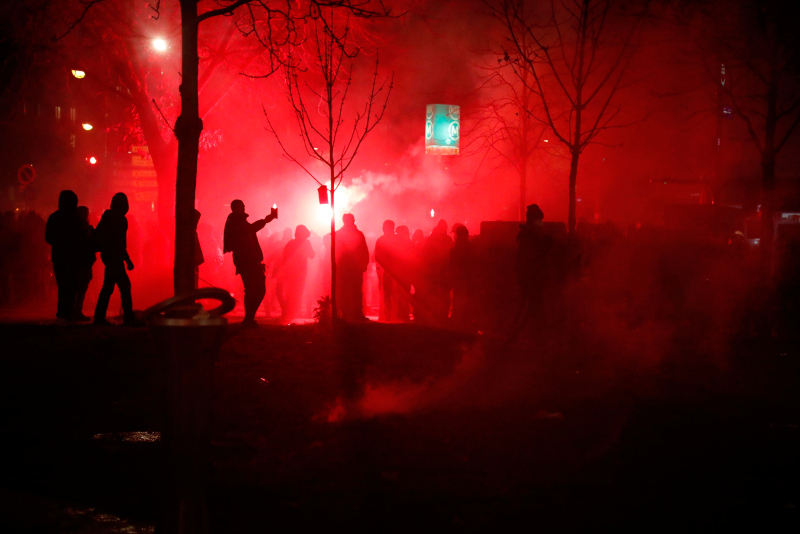 Başkent Paris'te polis bir kafeyi, trafik ışıklarını ve elektrikli motosikletleri ateşe veren göstericilere müdahalede bulundu.