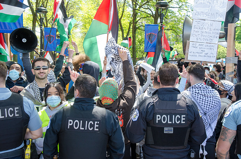 Filistin bayrakları taşıyan öğrenciler, kampüs içindeki protestolarını başkent caddelerine taşımak isteyince kampüs çıkışında polis tarafından engellendi. Güvenlik güçlerinin zaman zaman copla sert müdahalesi, sosyal medyaya yansıdı.