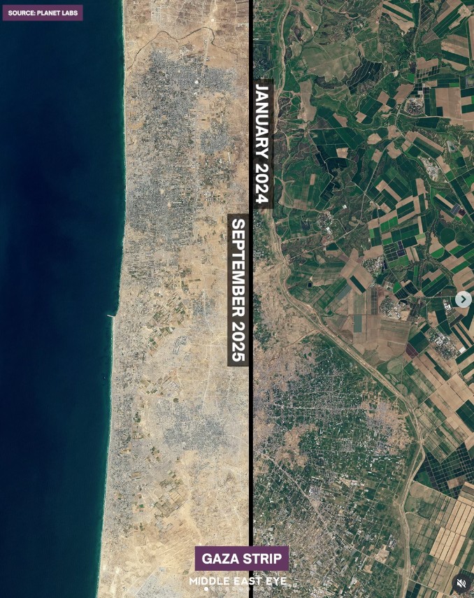 Uydu görüntüleri, İsrail saldırılarında mahallelerin tamamının yerle bir edildiğini, çok sayıda hastane, okul, ibadethane ve evin hasar gördüğünü veya yıkıldığını gösterirken soykırımı da açıkça gözler önüne seriyor.