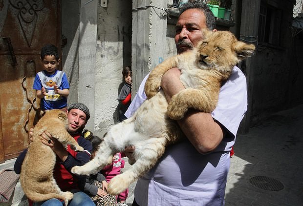 Gazzeli Sadeddin el-Cemel (50) yaklaşık 3 ay önce hayvanat bahçesinden satın aldığı aslan yavrularını büyük bir özveriyle evinde beslemeye başladı.