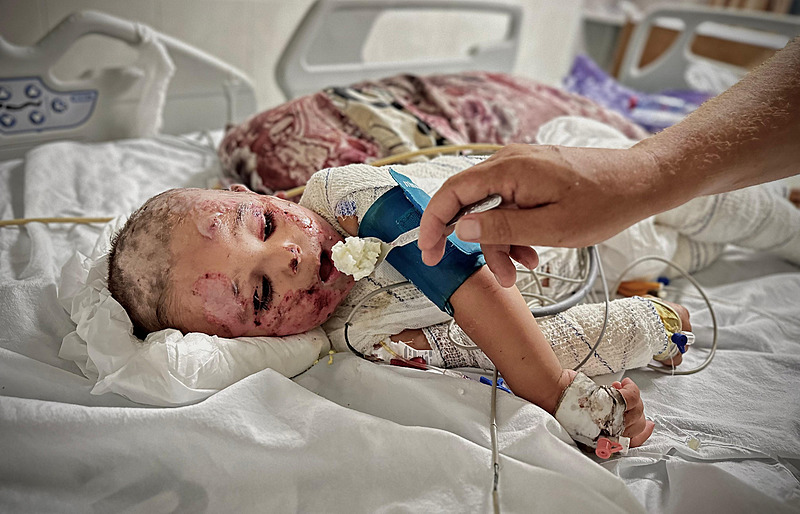 Bu hastanede tedavi gören 2 yaşındaki Kemal El-Akkad, tüm vücudunda birinci dereceden yanıkları olduğu için hayati tehlike altında.