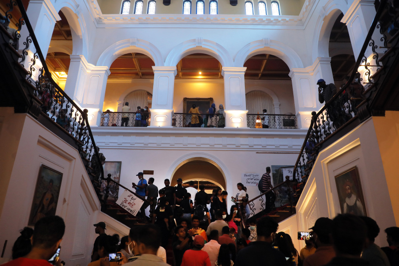 Protestocular, Devlet Başkanı Gotabaya Rajapaksa'nın resmi konutu ve ofisinin bulunduğu yerleşke çevresindeki barikatları aşarak konut ve ofise girmişti.