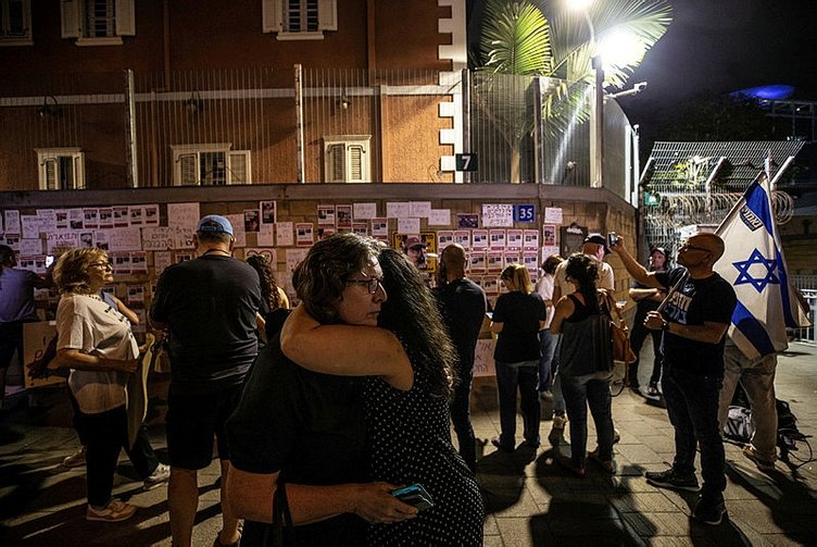 Başkent Tel Aviv'deki Savunma Bakanlığı önünde, yüzlerce İsrailli toplandı. Abluka altındaki Gaze Şeridindeki Filistinli silahlı grupların esir alınan İsraillilerin yakınları hükümetten sevdiklerini geri getirmesini istedi.