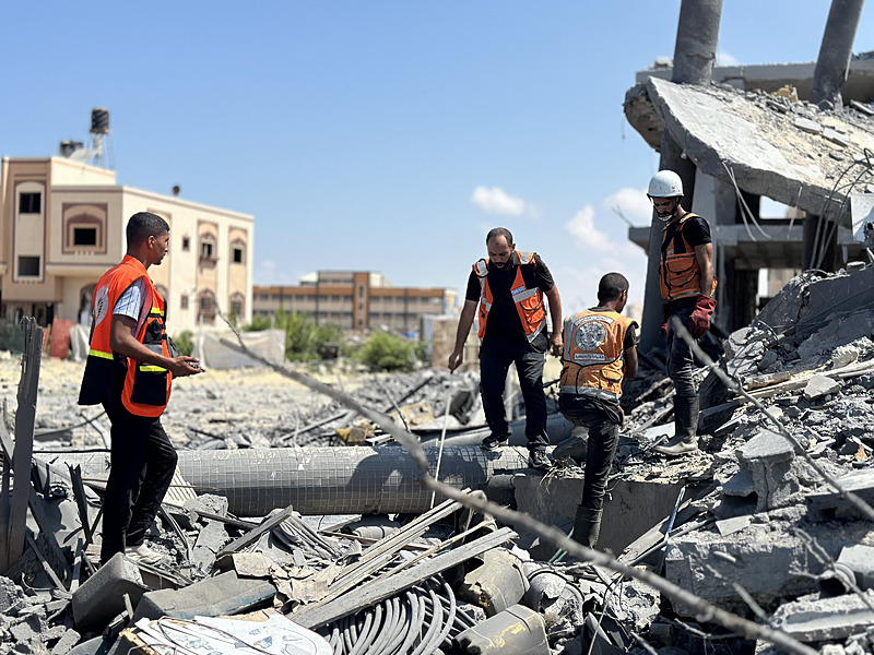 Gazze'deki Sivil Savunma Teşkilatı ile sağlık ve Uluslararası Kızıl Haç ekipleri, İsrail ordusunun girip hedef aldığı bölgelerde hayatını kaybeden Filistinlilerin cesetlerini enkaz altından çıkarmaya çalışıyor.