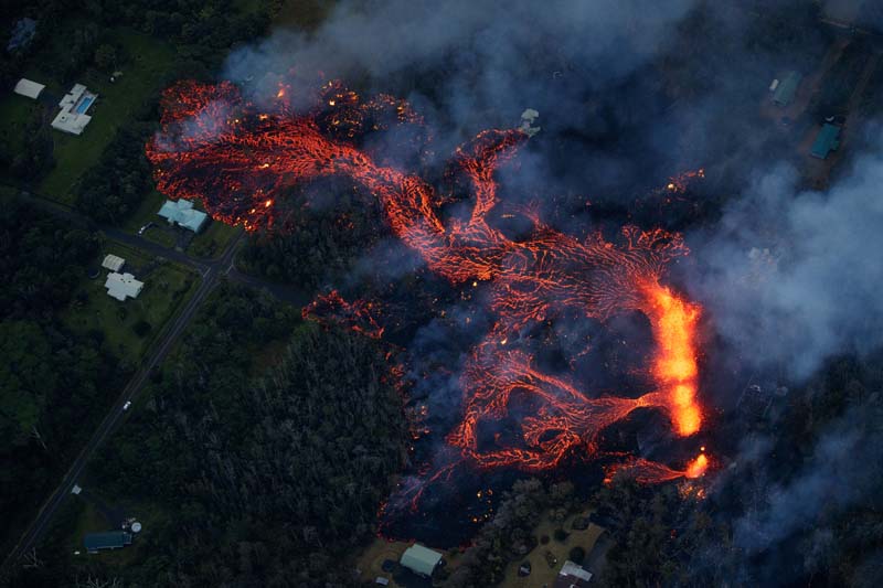 Hawaii'de Kilauea Yanardağı'nın püskürttüğü lavlar nedeniyle 31 evin yok olduğu belirtildi. Yanardağ lavlarının yerden yaklaşık 61 metre havaya püskürdüğü belirtildi.