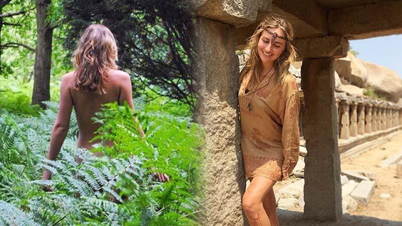 Genç kadın güneşin doğuşunu izlemek için çıplak bir şekilde dağ yamacına doğru yol aldı.