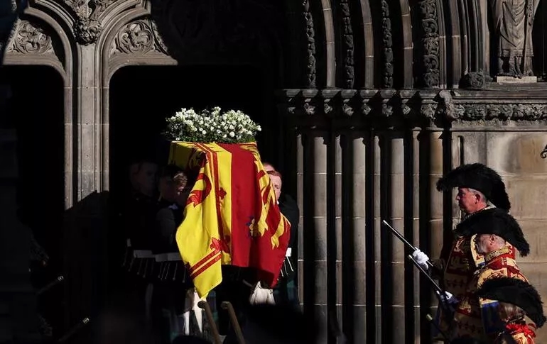 8 kraliyet askeri tarafından taşınan Kraliçe II. Elizabeth'in tabutu cenaze aracına yerleştirilip Buckingham Sarayı'na götürüldü. Aracın güzergâhı üzerinde binlerce kişinin yağmur altında beklediği ve kraliçeyi selamladığı görüldü.