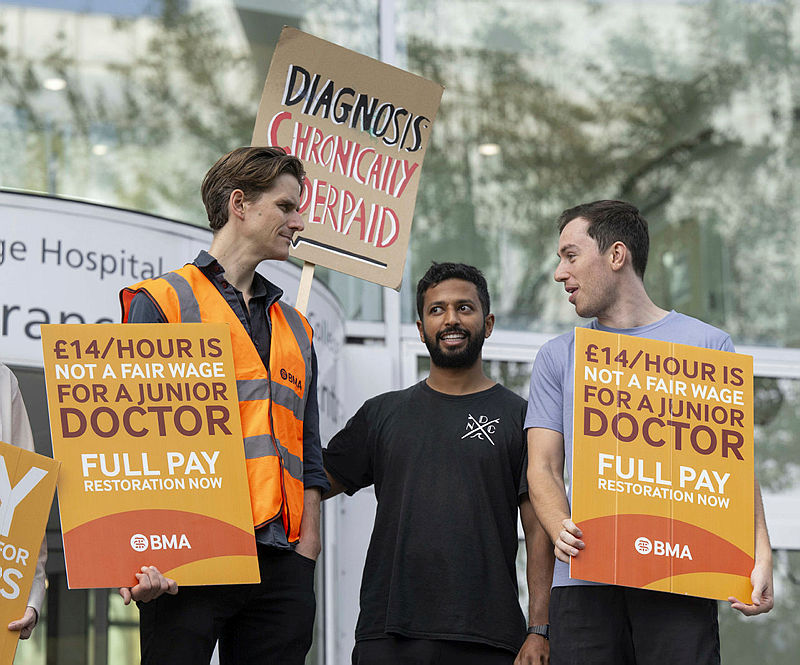 İngiliz Tabipler Birliği'ne (BMA) bağlı doktorlar, hükümetin yüzde 5'lik zam teklifini, hem enflasyonun altında kaldığı hem de son 15 yılda enflasyon altında zam aldıkları gerekçesiyle kabul etmeyerek 5 gün iş bırakma kararı aldı.