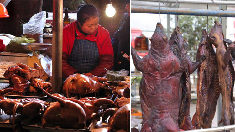 Çinli yetkililer, burada yasadışı olarak satılan vahşi hayvanlara el koyarak incelemeye aldı.