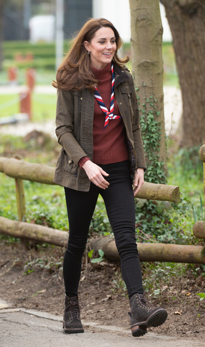 Middleton bir giydiği kıyafeti bir daha giydiğinde genellikle farklı aksesuar ve ayakkabılar kullanıyor. Ancak bu kez daha önce giydiği ceketini, kazağını ve botlarını tekrar giymeyi tercih etti.
