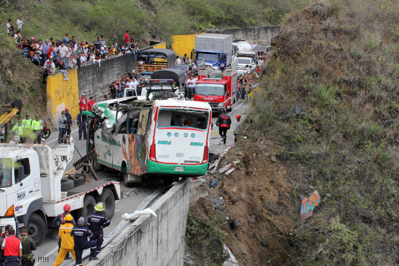 Kolombiya'nın Tumaco kentinden Cali'ye giden bir otobüs Pan-American Highway otoyolunda kontrolünü kaybederek devrildi.
