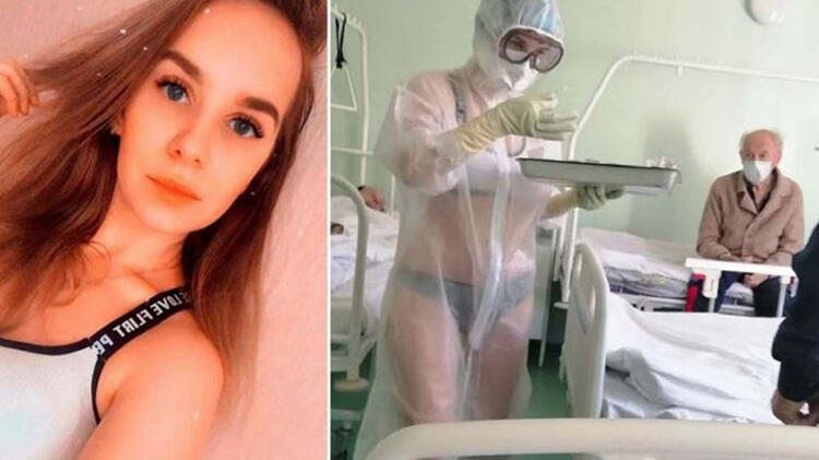 Rusya'nın Tula kentinde bir hemşirenin, iç çamaşırı ve şeffaf koruyucu kıyafet giyerek hastaları tedavi etmesi olay yaratmış ve tüm dünyada manşetlere taşınmıştı.