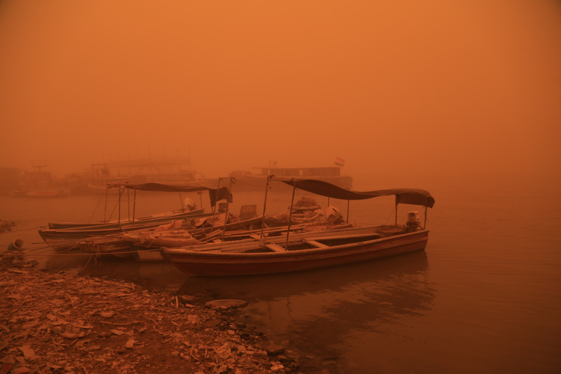 Irak'ı dün etkisi altına alan kum fırtınası nedeniyle Bağdat ve Necef'te uçuşlar askıya alınırken, başkent Bağdat'ta resmi tatil ilan edildi.