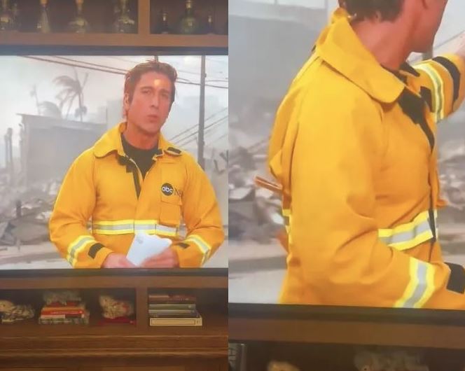 ABC News muhabiri David Muir, bölgeden son gelişmeleri sunduğu canlı yayında itfaiyecilerin giydiği alev almaz ceketi ile büyük bir skandala imza attı.