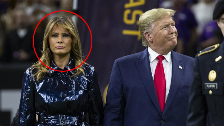73 yaşındaki Trump ve 49 yaşındaki Melania milli marşın okunması için belirlenen alana geçene kadar her şey yolundaydı.
