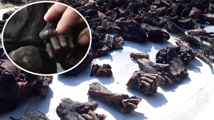 Kesilip yakılmış maymun elleri, kirpiler, yaban domuzları ve göçmen kuşların kaçak olarak satıldığı iğrenç pazarda, yakalanan köpekler ise işkence edilerek öldürülüp tezgahlara konuluyor.