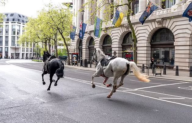 Süvari atlarından ikisi, Vida ve Quaker dün sabah 8.40'ta Belgravia'daki Wilton Crescent'ten geçerken bir inşaat işçisinin traversinden yere düşen betonun çıkardığı ses ile ürkerken caddelerde hızla koşmaya başladı.