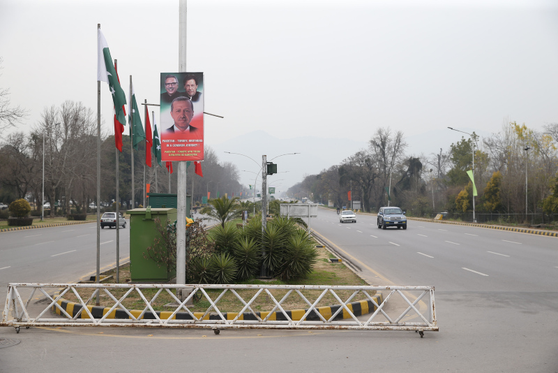 Başkent İslamabad'da devlet binalarının bulunduğu Constitution Bulvarı, Erdoğan'ın konaklayacağı otelin önü ve havalimanı güzergahındaki yollara, Başkan Erdoğan'ın fotoğraflarıyla iki ülke dostluğunu anlatan Türkçe ve İngilizce afişler asıldı.