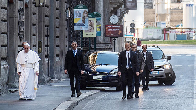 Sokağa çıkan Papa Francis, corona virüs salgınının sona ermesi adına dua etmek için Roma'nın ıssız sokaklarından kiliseye doğru yürüdü.
