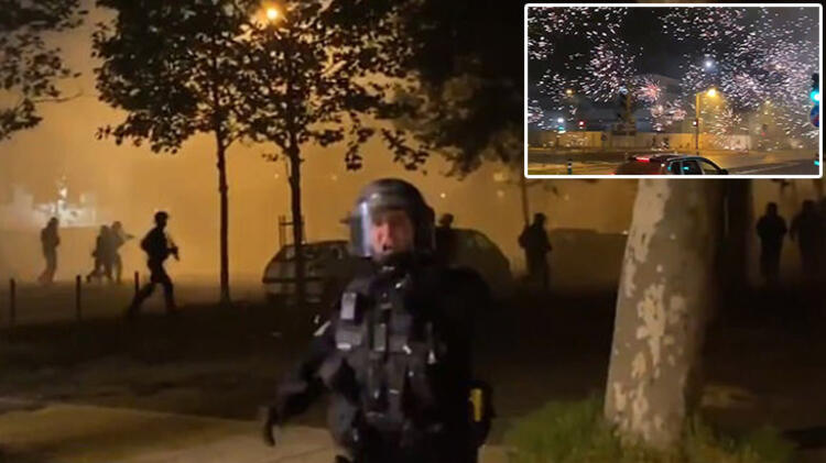 Paris'in kuzeyindeki Villeneuve-la-Garenne'de bu sabah erken saatlerde sokakta protestocu gruplar tarafından havai fişek patlatıldı, polis ekipleri ise göz yaşartıcı gaz ve sertlikle cevap verdi.